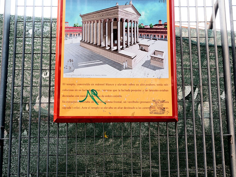 Su estructura constaba de una escalinata frontal, un vestíbulo (pronaos) y una cámara (cella). Ante el templo se elevaba un altar destinado a las ceremonias religiosas.